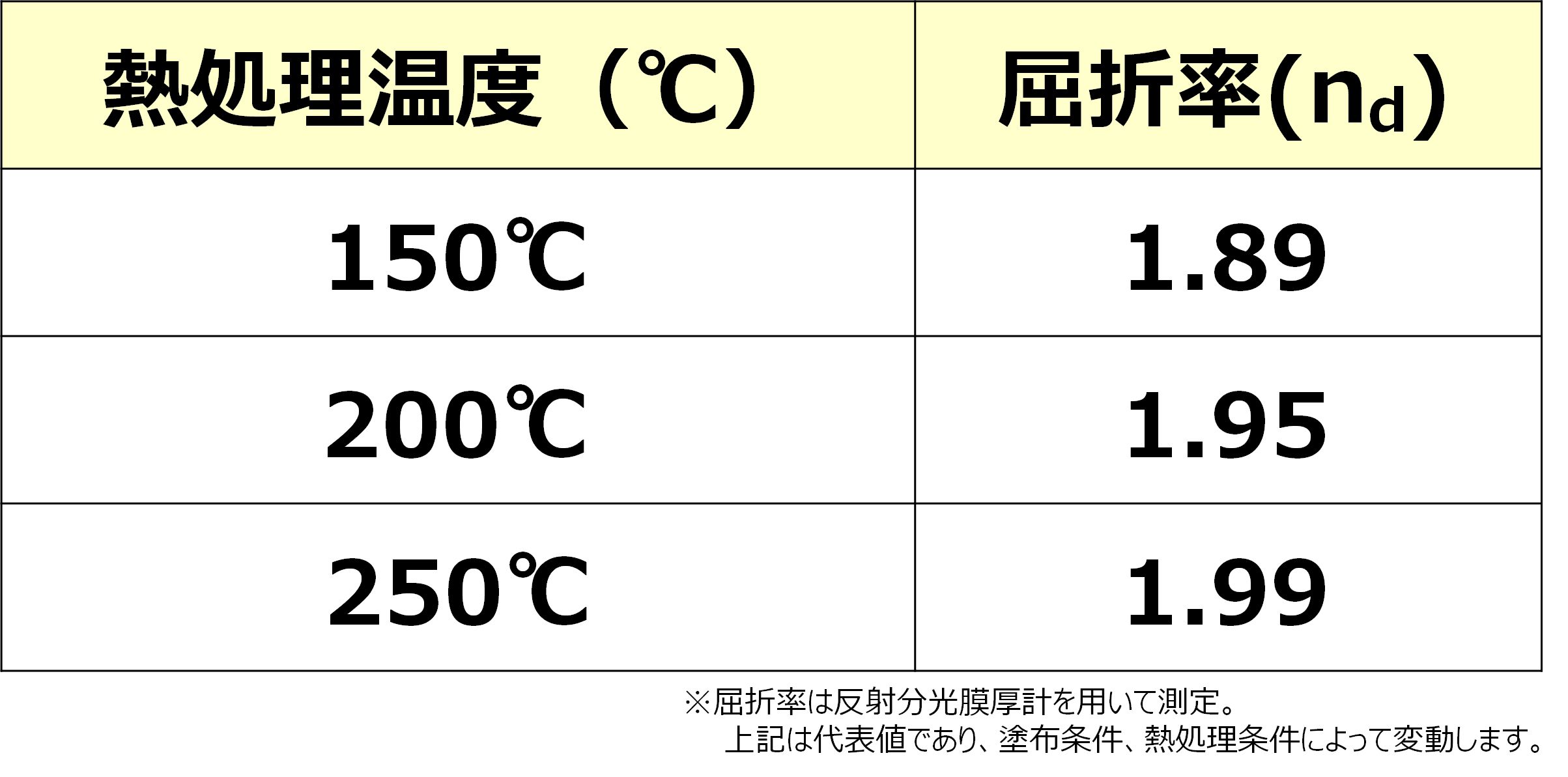The ultra-high refractive index material is an organic solvent solution of non-crystalline titania. Therefore, it has exceptionally high transparency and is not photocatalytic.