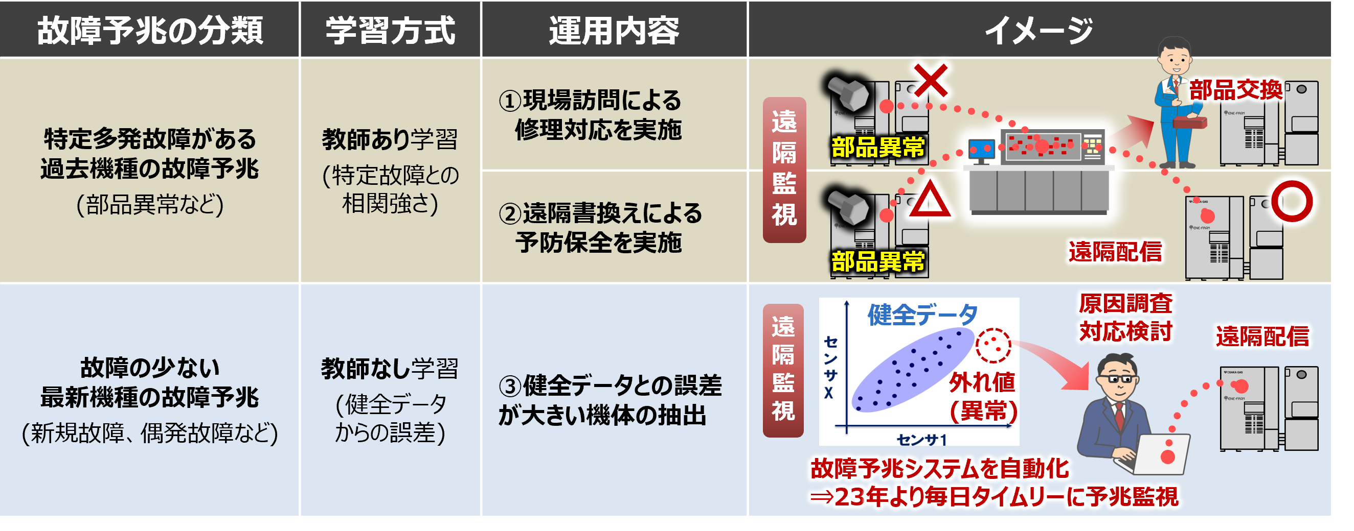 While these activities are currently focused on ENE-FARM systems, we are also evaluating predictive failure applications for conventional water heaters by leveraging the operational data already available from those products.