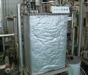 その結果、生ごみなどの有機資源(バイオマス)を80℃の高温下で低分子化する超高温可溶化技術(メタソリューション)の実用化に目処がつきました。これは従来の発酵槽に加えて、超高温可溶化槽を組み合わせた2段階でメタン発酵を行う画期的なシステム。通常の発酵処理に比べて、バイオガスの発生量が約20%増加し、従来のメタン発酵の課題であった残渣・排水処理量も半減。ランニングコストの削減にもつながります。