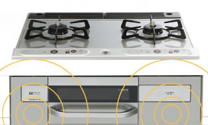 コンロ前面の左右に配置したダブルスピーカー方式を採用